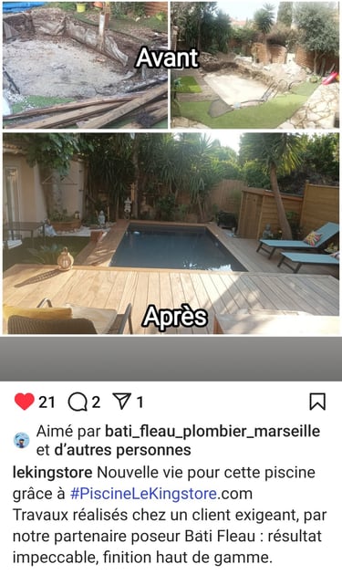 BATI FL'EAU a concrétisé ce projet d'aménagement extérieur avec la pose experte d'une piscine bois Lekingstore à Marseille. Grâce à notre rigueur technique de "couteau suisse de l'habitat", nous avons transformé ce jardin en un espace de détente unique, fonctionnel et durable. Résultat : une installation parfaitement intégrée et un client 100 % satisfait de notre triptyque honnêteté, qualité et efficacité.